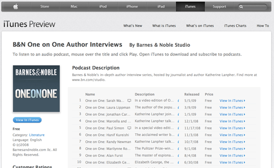 Barnes and Noble have amassed quite a variety of author interviews here in One on One Author Interviews.