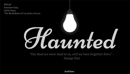 Caitlin’s website is a compelling, engaging work that discusses the idea of memories. She talks about Aislinn’s Hunter’s book, The World Before Us through this lens, but is able to make it personal and relevant to us. Do our memories of our past help or hinder our growth as an individual?