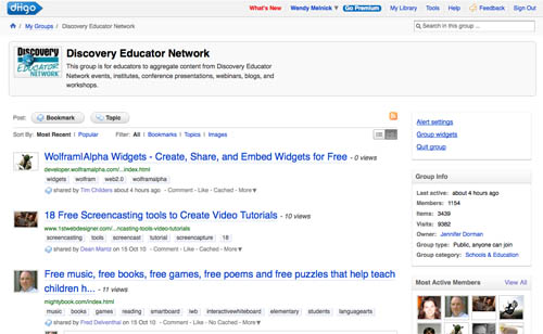 Diigo is a research tool that attaches to your web browser. You can then grab images, bookmark urls, highlight text, capture sections of the screen and organize this information in folders in a library. You can create a group for your class and share all the research that everyone does on the topic. You can also join an existing group relevant to your research. This is the Discovery Educator Network: